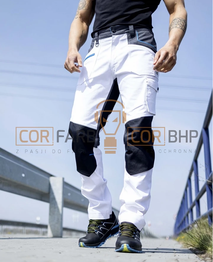 Ergonomia i styl SLIM FIT Spodnie charakteryzują się dopasowanym krojem SLIM FIT, który nie tylko podkreśla sylwetkę, ale jest przede wszystkim funkcjonalny. Anatomicznie ukształtowana strefa kolan zapewnia maksymalną swobodę ruchu, co jest kluczowe dla pracowników fizycznych. Ponadto, kolana wzmocniono podwójną warstwą materiału Oxford z wykończeniem hydrofobowym, co zwiększa odporność na wilgoć i ścieranie. W tych strefach znajdują się również praktyczne kieszenie na nakolanniki.