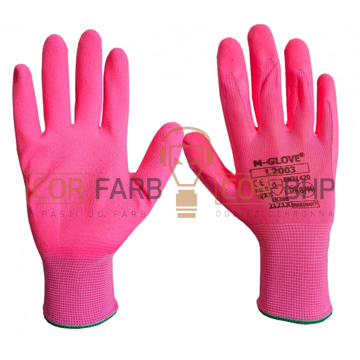 M-GLOVE L2003 to wysokiej jakości rękawice ochronne, które łączą wytrzymałość z komfortem użytkowania. Wykonane z dzianiny poliestrowej, są lekkie i zapewniają doskonałe czucie. Specjalna powłoka ze spienionego lateksu gwarantuje pewny chwyt oraz zwiększoną ochronę dłoni w suchym i wilgotnym środowisku pracy. Różowy kolor ułatwia identyfikację.