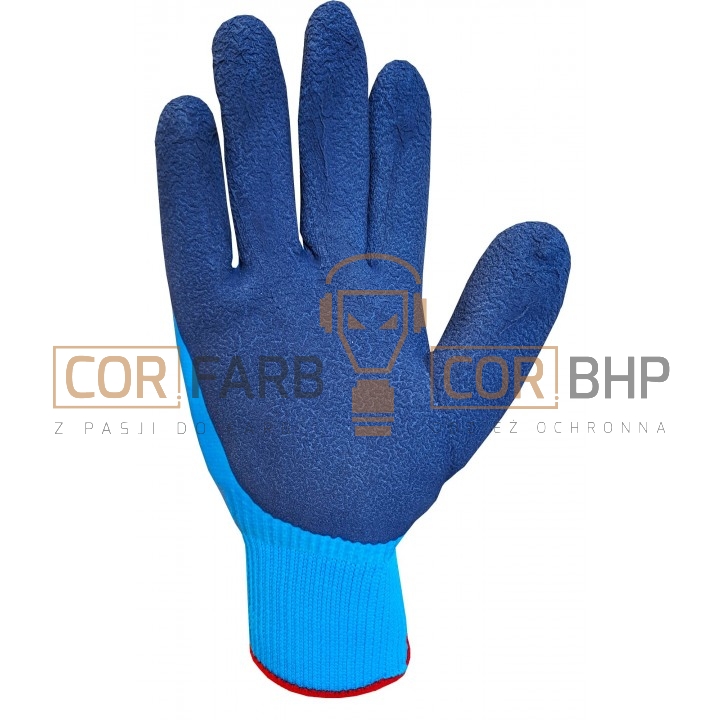 Rękawice wykonane są z ocieplanej przędzy poliestrowej (7G), która gwarantuje komfort użytkowania oraz skuteczne utrzymanie ciepła. Powłoka z pianki lateksowej o porowatej strukturze zapewnia pewny chwyt i elastyczność, co jest kluczowe podczas pracy w chłodnych i wilgotnych warunkach.