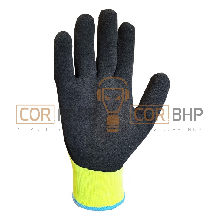 Izolacja Termiczna: Gruba, miękka dzianina akrylowa (również w kolorze żółtym) po wewnętrznej stronie rękawicy, gwarantująca komfort termiczny i ciepło.