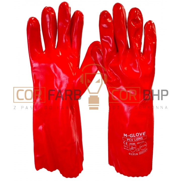 Rękawice M-GLOVE PCV LONG 4121X to wysokiej jakości sprzęt ochrony indywidualnej, zaprojektowany z myślą o pracach wymagających zabezpieczenia przed substancjami chemicznymi i wysoką wytrzymałością mechaniczną.