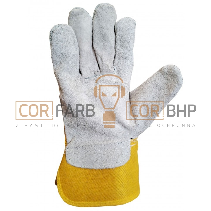 Wykonane z wytrzymałej dwoiny bydlęcej, gwarantują doskonałą ochronę i długą żywotność. Część grzbietowa oraz mankiet wykonane są z trwałego, żółtego drelichu, który zapewnia komfort i widoczność.
