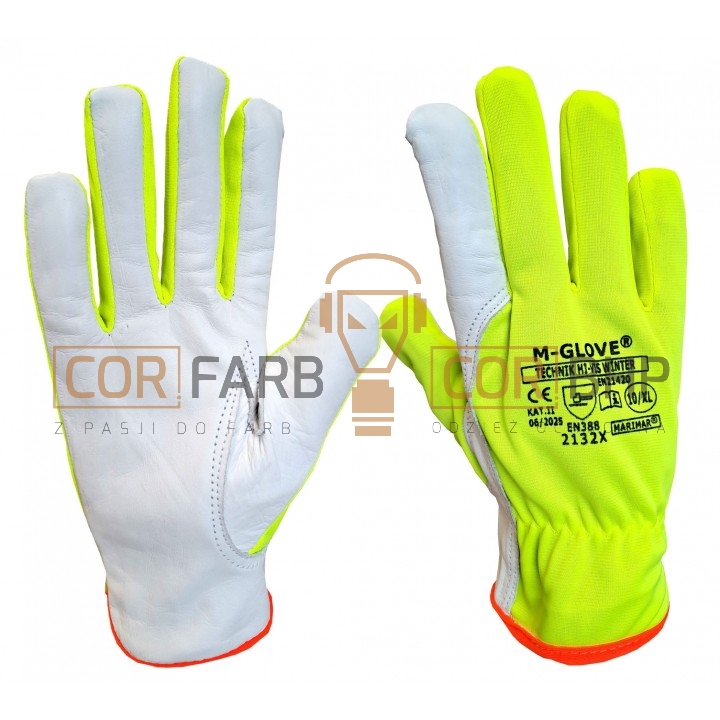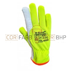 Materiał: Ocieplane rękawice z dzianiny nylonowej w części grzbietowej oraz wysokiej jakości skóry licowej w części chwytnej – zapewniającej pewny uchwyt i trwałość. Konstrukcja całodłonicowa.