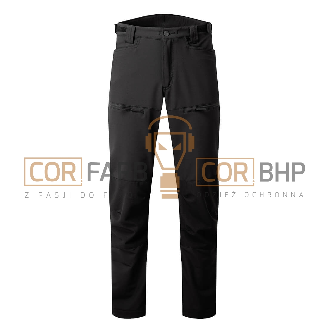 Nieskrępowana Swoboda Ruchów Dzięki zastosowaniu tkaniny typu 4-way stretch (rozciągliwej w czterech kierunkach), spodnie idealnie dopasowują się do sylwetki podczas schylania, klękania czy wspinaczki. Elastyczny pas z dodatkową regulacją na rzep oraz nogawki wykończone zatrzaskami pozwalają na personalizację dopasowania do każdego typu sylwetki i obuwia.
