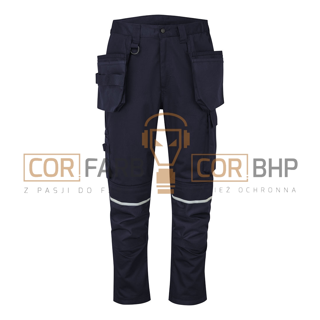 Model Portwest CD845 został zaprojektowany z myślą o ergonomii. Wyposażono go w system 12 obszernych kieszeni, w tym: