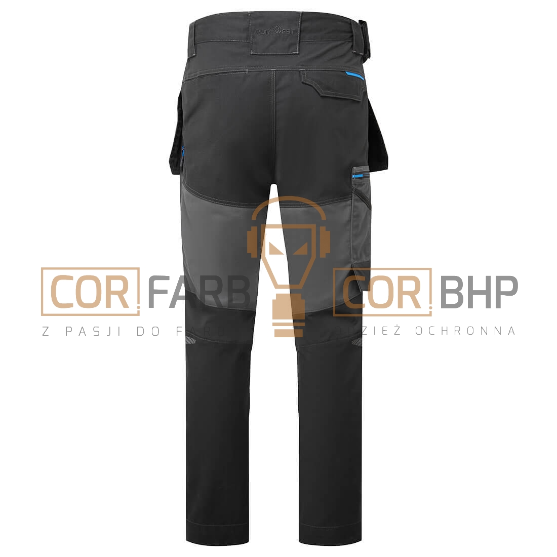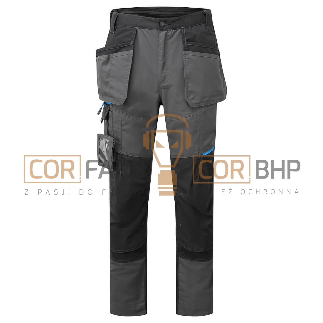 Ochrona kolan: Dwuwarstwowe kieszenie na nakolanniki z systemem wkładania od dołu (zgodne z normą EN 14404) pozwalają na regulację pozycji nakolannika dla maksymalnej wygody.