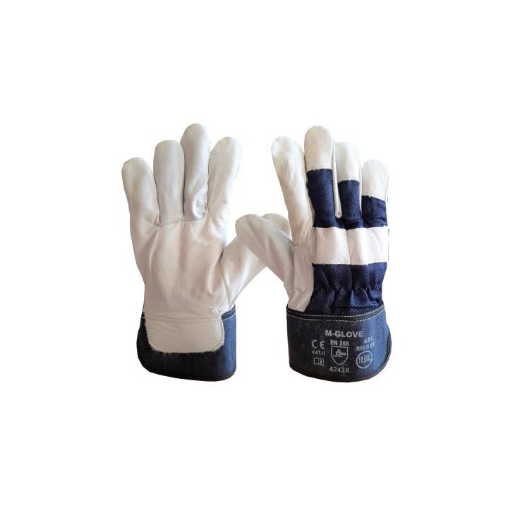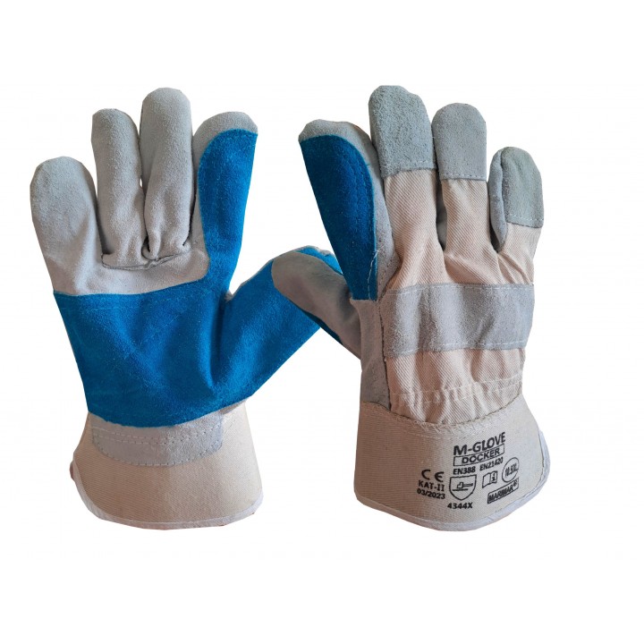 M-GLOVE DOCKER WHITE-BLUE 4344X Rękawice ochronne z dwoiny, całodłonicowe.